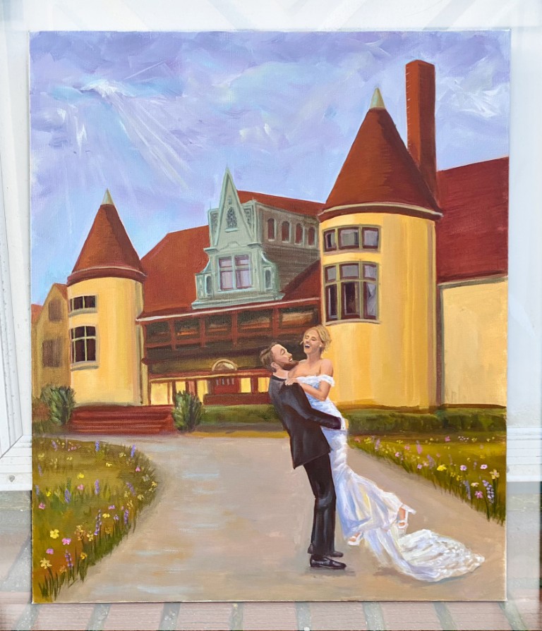 If having a painting of yourselves in your home is not your vibe, consider a beautiful painted rendition of your venue that you can look at for generations to come.